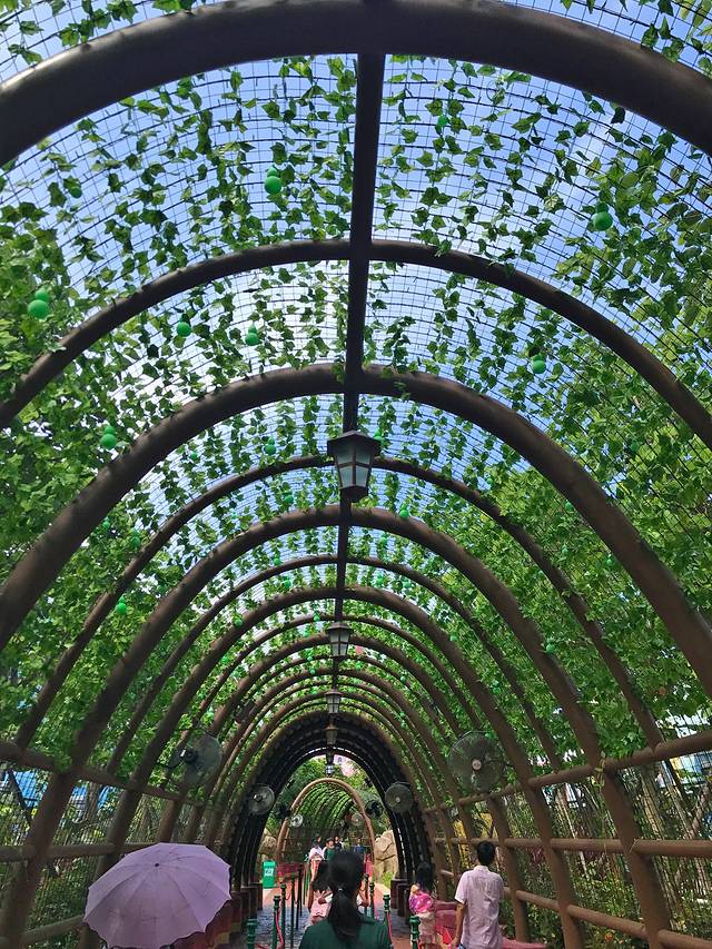 通道两旁的虫鸣鸟叫不绝于耳,还未进园,已经有清凉的感觉