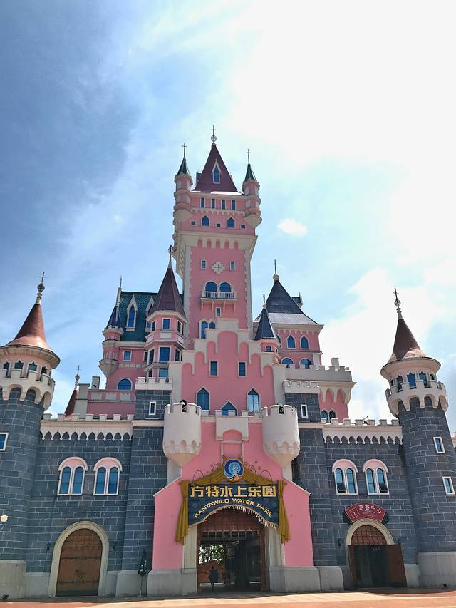 本人家在泉州,下午两点左右坐动车出发,25分钟到厦门北站,直接坐691路公交车,40分钟就到目的地!因为暑期水上乐园营业到晚上10点,所以可以下午过来。在彩虹大桥上远远的就看到粉色城堡,非常梦幻~没想到这竟然是水上乐园的入口,方特hin有想法!我们直接在售票口买票,160元/人。过了安检(这里要提醒大家,安检口只能带矿泉水,面包零食是不能带的)就是一段长长走廊,这里会有个小惊喜,晚点再说。