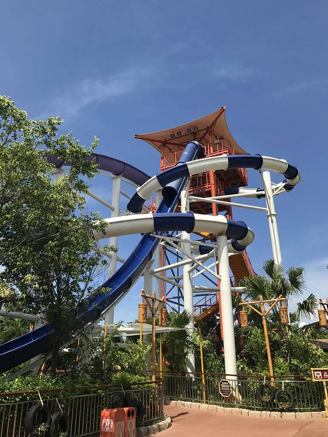 第二个是风驰极限。高度、75°的陡坡滑道和螺旋,几乎要仰头才能看到出发点。怕什么,女汉子一个,那就上呗!工作人员系着安全绳索,那么刺激。。?我选择了最高的蓝色滑道,俯冲而下的那一瞬间,我的每个细胞都在呐喊:卧槽!高速滑行时有种自由落体的感觉,风在我耳边呼啸,水花拍打着我的身体,停下来的时候,居然有种疯狂的愉悦感!那就再来一次吧!