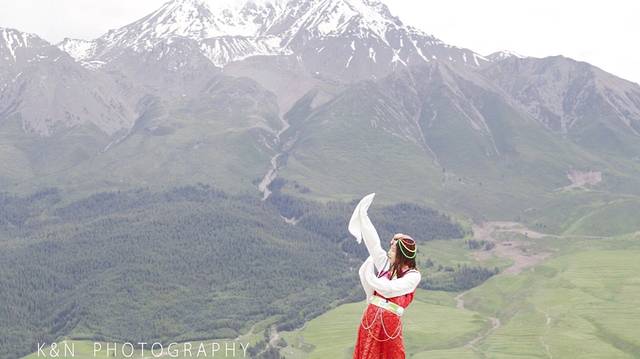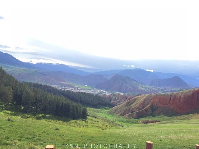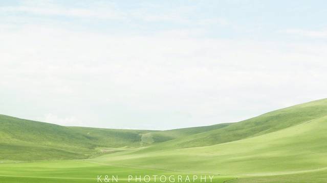一个由栈道直通到山顶的地方,景色是绿草披山,无边无际,使人感到一派生机勃勃,远处是佛塔,是高耸的烽火台,终点的祥和塔或许暗示终点即是轮回,也就是没有终点,督促保持祥和之心行人生路,整个过程是放松的,是从容的。