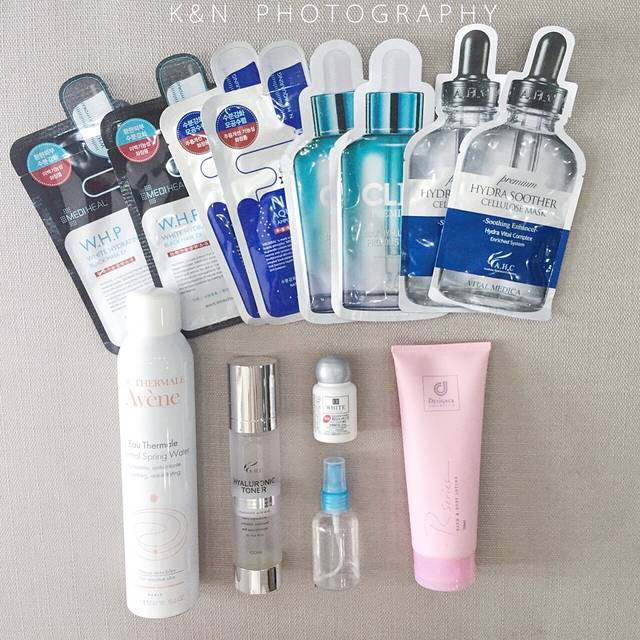 爽肤水+精华:AHC神仙水(因为旅游不想带太多重的水乳,所以只带了这一瓶)、大创美白精华(用来减少脖子与脸部的色差的,个人习惯坚持用)