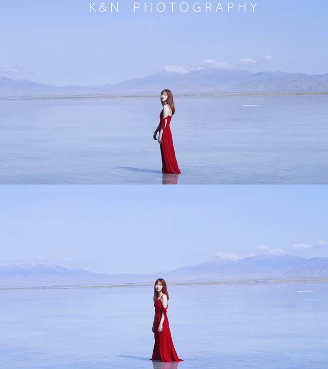 4.拍照时,在湖里走动要慢要轻,不然会弄得湖水黑黑的拍照也不好看。另外要注意别掉进盐湖的溶洞里了哟!安全很重要!