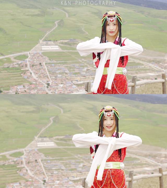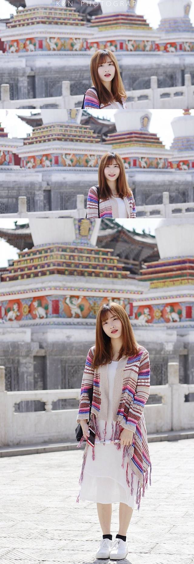 5.拍照确实穿鲜艳颜色的衣服较好,妆容不需要太浓,但是五颜六色的就不推荐了。可以穿纯色的连衣裙之类的。