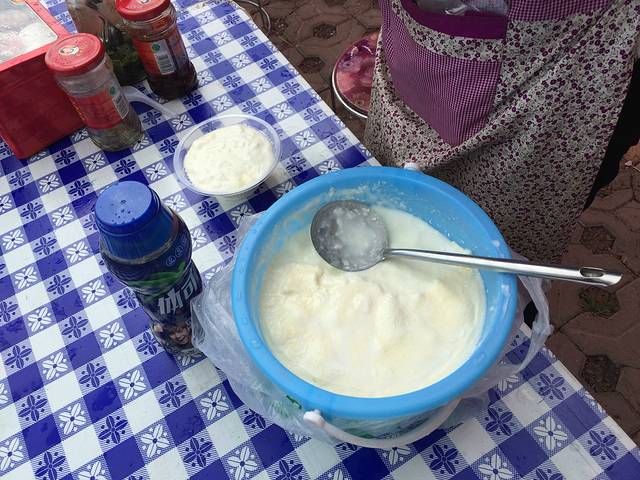 天气真好(太阳)在扁都口吃了好多小吃(色色)原来鸡蛋也可以烤着吃!当地居民自制的牦牛酸奶真的好酸好酸哈哈哈,加了几大勺的白砂糖还是酸,不过口感蛮好的。