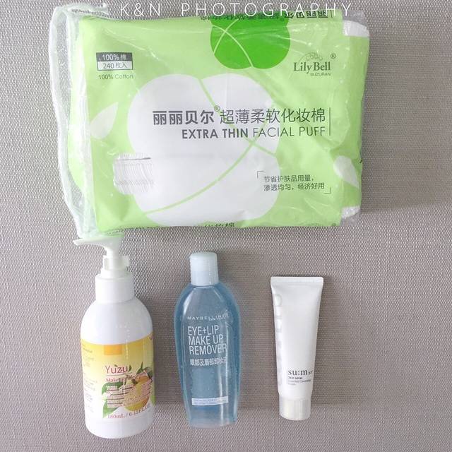 卸妆类:日本柚子卸妆乳、美宝莲眼唇卸妆液、SU:M呼吸洗面奶中样、LILY BELL卸妆棉。
