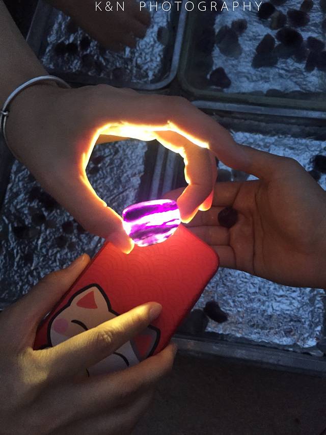 张掖这边纬度高日照时间长,日落是晚上10点。在张掖体验到不一样的风光,大自然的鬼斧神工。可惜 等了好久,是阴天看不到张掖的日落,不过拍到了21:30的“神户牛柳”和22点的“三色糖果”。临走的时候还在路边的小贩那里淘到了一块外边平淡无奇,在灯光照射下散发紫色光芒的的丹霞七彩石。