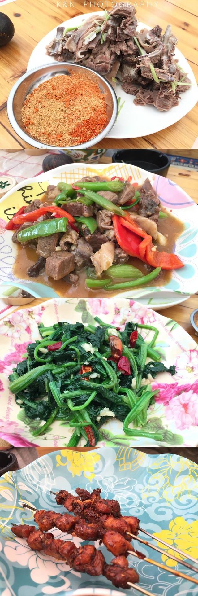 牧家外面像是普通旧厂房,但是进去了里面别有洞天!设计得富含民族特色,里面可以打桌球和下象棋。房间的床还有贴心的电热毯,因为西北昼夜温差无敌大,可谓“早穿棉袄午穿纱”。晚上也在牧家解决了,手抓羊肉、牦牛肉和拷羊肉串都好好吃(色色)
