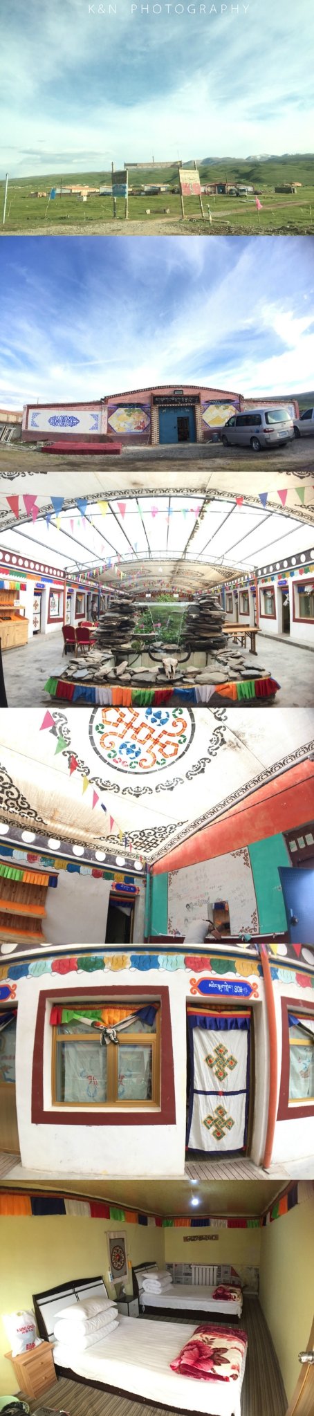 小马哥推荐一家牧场旅馆给我们,叫“拉毛叶措天堂牧家”,是在草原上的,有热水供应洗脸,不过没有浴室和独厕。(因为西北这一带路上的厕所都是那种“原生态级别”的公厕)但是可以和羊群玩,亲自大自然耶,想想就激动,也就不纠结一个晚上没得洗澡了,反正也没怎么出汗哈哈。