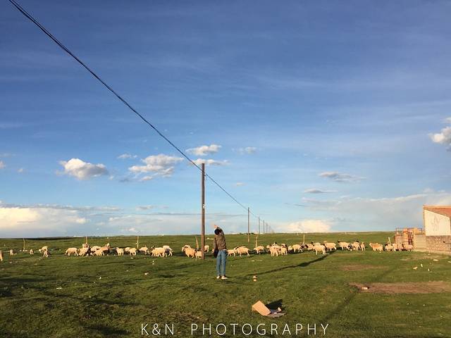 吃完晚饭后已经8点半了,走去外头。有些起风冷了,需要穿厚外套。但地处纬度高,天空还是亮堂堂的。此时的太阳光不刺眼,羊群在余晖下,依旧吃着草,悠哉悠哉地走着,让人沉浸于风吹草低见牛羊的美好遐想中。
