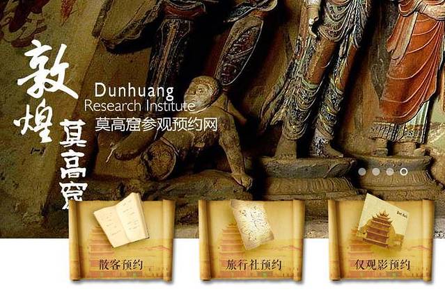 附上官网预约的网址和图。别被骗啦,官方渠道只有一个。虽说现场可以售票,但是早上去只能预约到下午的。另外一定要提前半小时到达现场,最好提前一小时!因为排队的人很多很多很多!如果没有提前半小时进入管内,很有可能错过电影环节。错过预约时间是没法再观影的,但是可以去参观莫高窟。呜呜我们记错时间然后错过观影环节了(~~~~(>_<)~~~~锤心口ing)