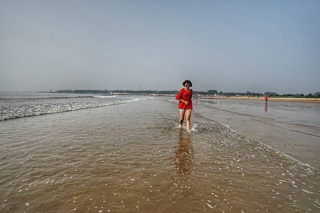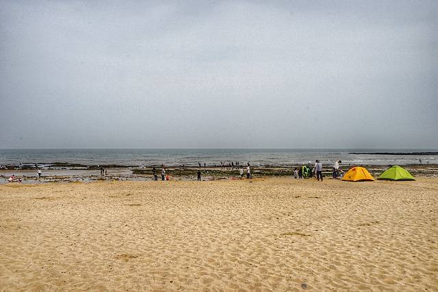 继续去吴家台海水浴场,我们没有把车开上沙滩,虽然停车场要收费,沙滩上不收费,但也没必要省这个钱吧,把车开上沙滩实在是大煞风景,而且也很容易陷到沙地里面去。
