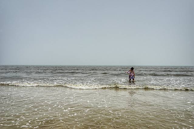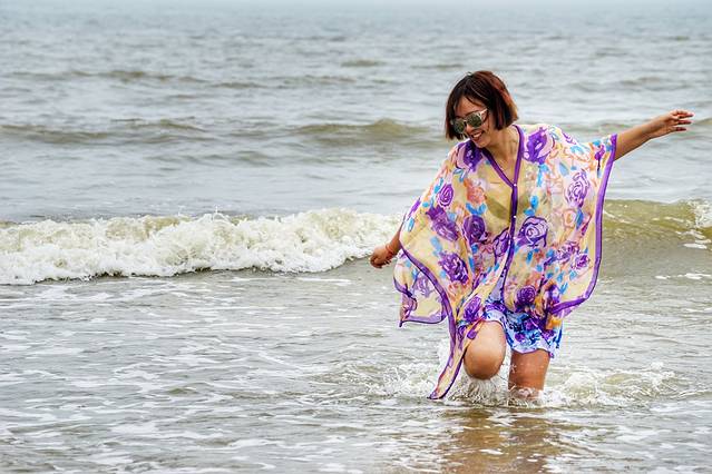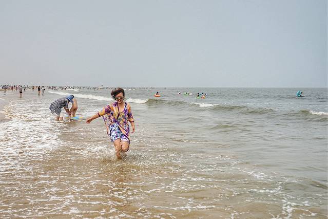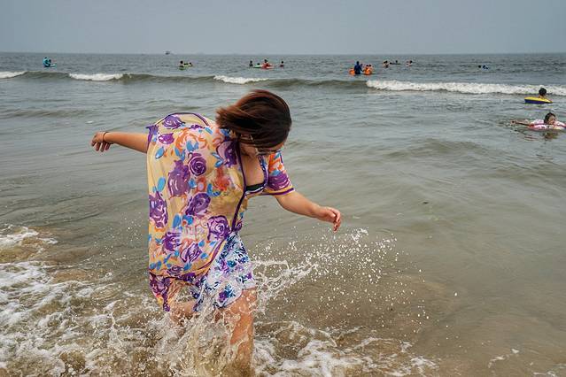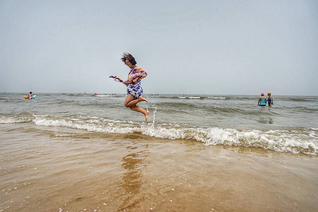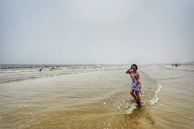 即使天气还不是很热,今天又是阴天,但是既然来到海边,大家还是迫不及待地扑进大海,就连不会游泳的人儿,也已经兴奋地不能自持了。