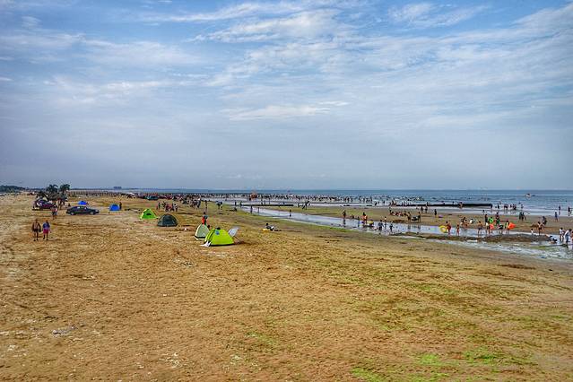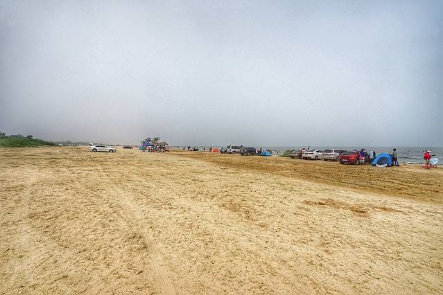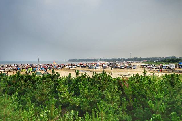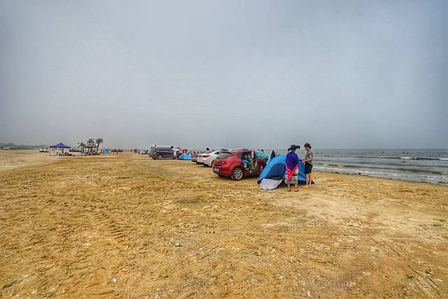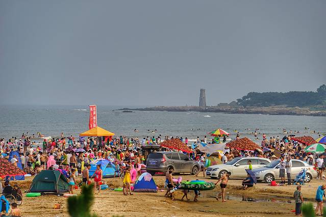 不过因为免费,管理难免不太规范,你看很多人都把车直接开到沙滩上去了,人本来就多,再乱七八糟停满了私家车和摊贩,就显得更嘈杂了。据说真正旺季到来后会加强管理,那样的话就会好一些吧。