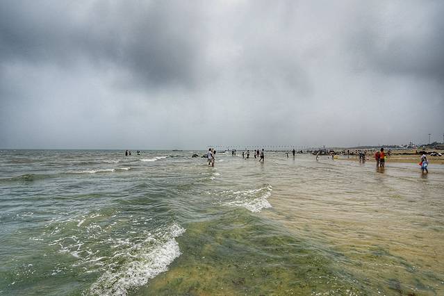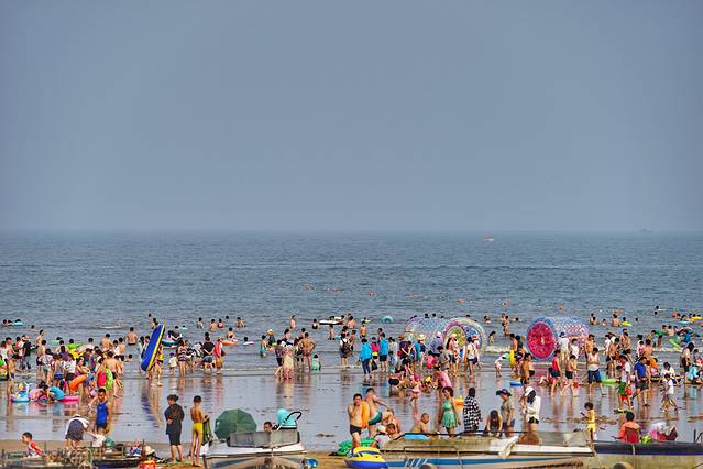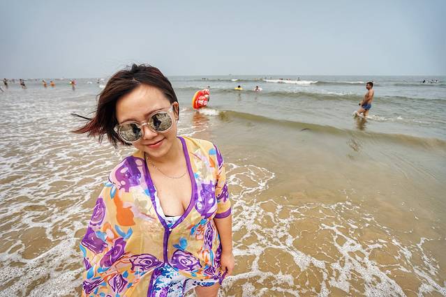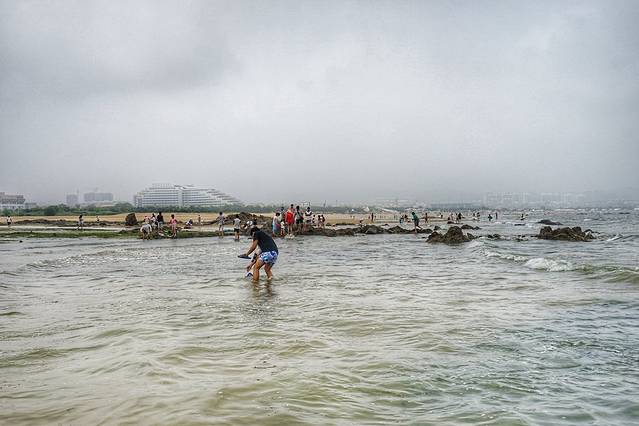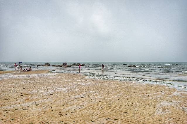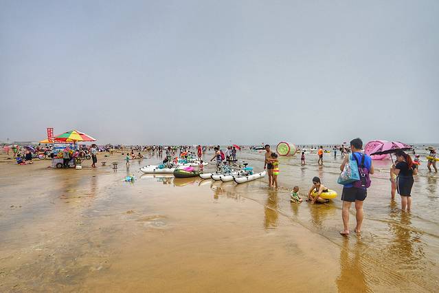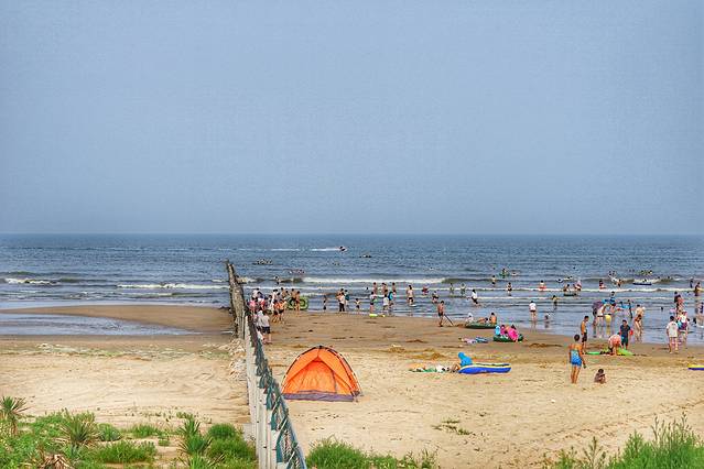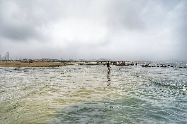 一个海水浴场是不是好,不光是沙子细腻,这只是最基本的条件,最重要的其实是安全性。这里的浴场坡度非常平缓,从岸边向海里走几百米,水都没不过顶,是非常适合游泳的海水浴场,尤其是小孩子,在这里特别安全。