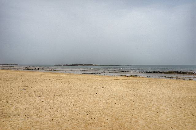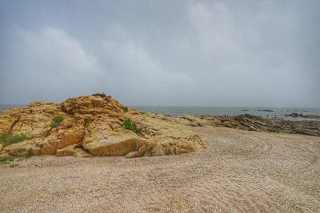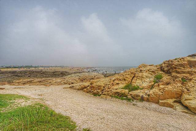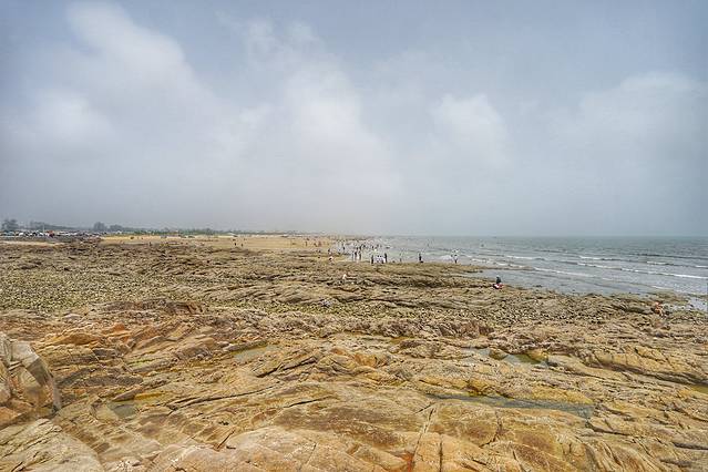 这里也有面积不小的沙滩,但沙子比起吴家台旁边的海滨要粗糙一些,而且沿海又有礁石,并不适合游泳。越往南走,离市区越近,沙子就越粗。等看过了日照的其他沙滩,才会真正感受到吴家台海滨的海水浴场有多么好。