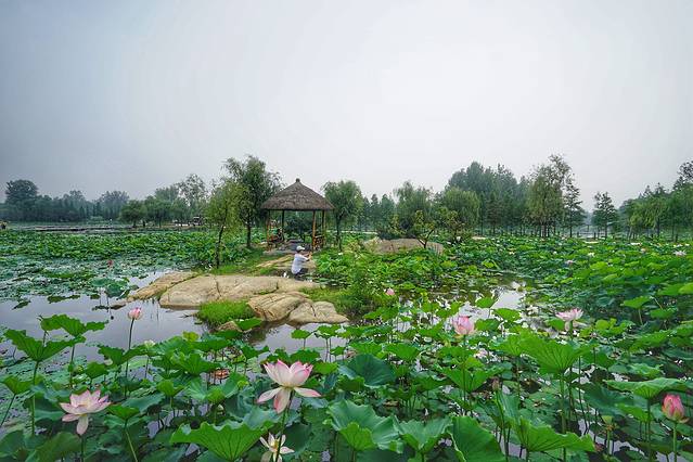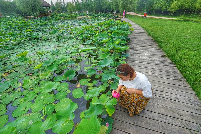 海滨森林公园离吴家台村很近,就在村口,走过去用不了几分钟。来的有点早,荷花刚刚才开。荷花花期很长,从六月到九月,每个时间段都能看到不同的荷花,所以后面来的朋友有福气了。