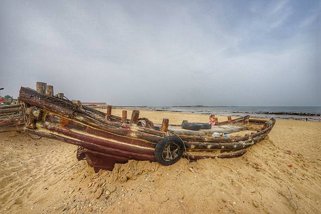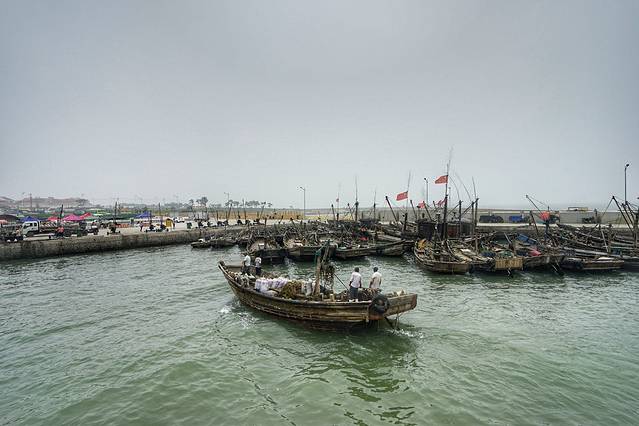 真正渔船出海捕渔的距离要比我们刚才的游船远得多了,这种小小的木质渔船都要走出去10公里左右。每天这么多游船在这么靠近海岸的地方捕捞,虽然是象征性的一点点,但是在禁渔期也是对海洋的伤害吧。