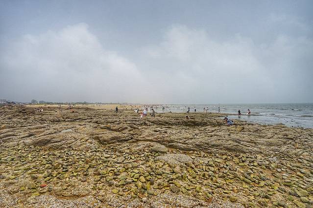 紧邻吴家台海水浴场的,是一大片礁石,这是是日照面积最大的礁石滩,退潮以后面积特别巨大,是个赶海的乐园。住在吴家台村,每天退潮以后都可以来赶海,也是这里吸引人的一个重要因素。