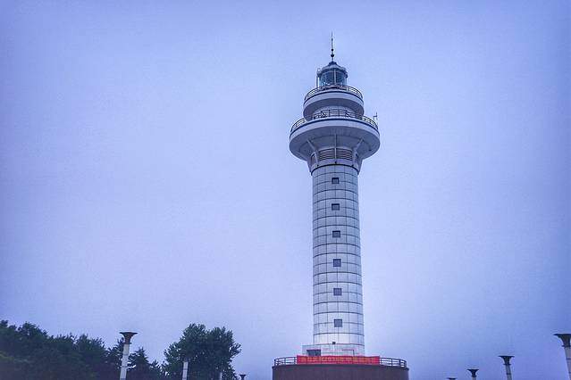 这就是著名的日照灯塔本尊,和潮汐塔一样都是日照的标志。灯塔高36.2米,射程18海里,约33公里,是1982年建造日照港的配套设施,为日照近海及进出日照港的船舶提供了导航服务。