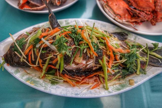 还挑了一堆很便宜的海鱼,有的客人喜欢吃,当地人自己也喜欢吃。海鱼和螃蟹、皮皮虾什么的不一样,离水马上就死了,所以回到岸上就是臭烘烘的味道,但是这鱼做出来也是很新鲜的,味道很好。