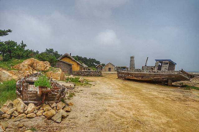 看到很多游记都说任家台旁边有个影视基地挺不错的,反正也不要门票,就顺路看看吧。海石园再往前走不远,任家台广场旁边有条土路开进去就到了。以前可以直接开进去,但现在拦起来,荒地上面围起了个简单的停车场,居然要收停车费,虽然不多,只要10元钱,但也挺让人郁闷的。日照一过7月份,沿海本来都不收费的停车场,都开始收费,有些地方还不是停车场,只是原始的场地,因为可以停车,也要交费。虽然可以理解,但是停5分钟也是10块,停一整天也是10块,感觉还是很不合理的。