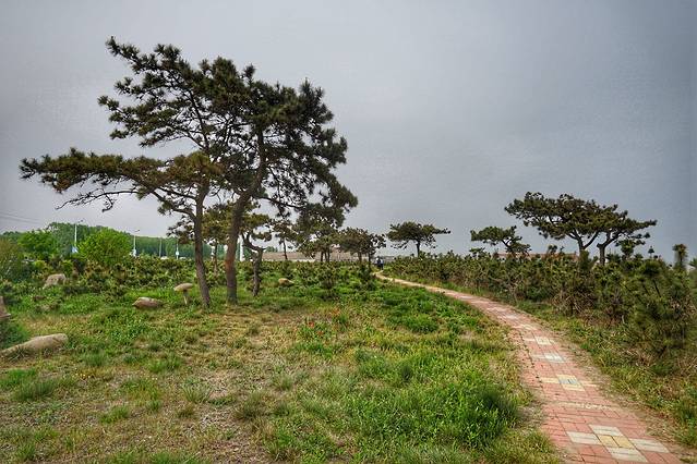 今天沿着海边转转,一路向南去灯塔和世帆赛基地看看,沿途有景色随时停车。吴家台海滨浴场旁边有片树林,这里原来有个叫海石园的景点,现在好像已经荒废了,但是导航上面还有显示,于是下来看看。虽然荒废了,但是草丛中还有小路,里面也能看出很多人为修饰过的痕迹。
