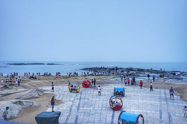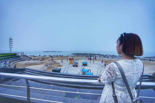 到灯塔风景区已经是傍晚,这里的除了著名的灯塔本尊,还有灯塔广场、礁石广场、望海广场三个海滨广场,景色特别漂亮。尤其是这里大块的礁石,爬上去观海听涛,凭海临风,也是很有乐趣的。