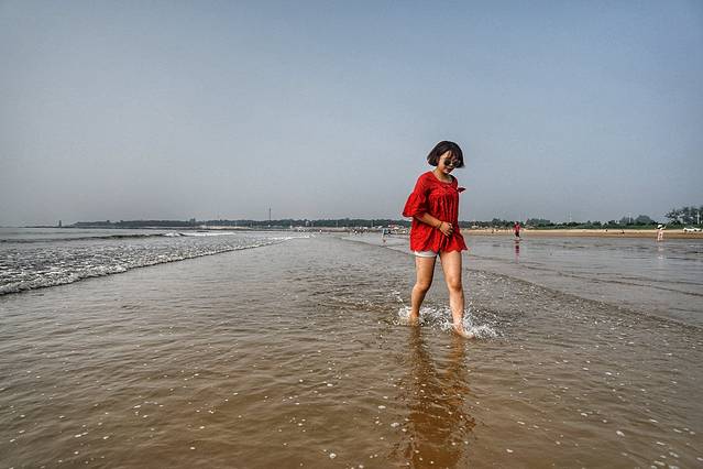既然花了门票钱,当然就要好好享受一天森林公园里面的海水浴场。出来已经是傍晚,来吴家台海水浴场转转吧,这里的海滨更加原始些,反而更有味道。