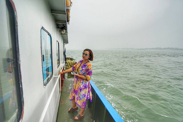 游船行驶在海上,速度并不快,但是第一次出海的朋友要小心点,因为虽然看着没有什么风浪,但是船到了海里还是有些颠簸的,所以尽量不要跑来跑去,很多人可能会晕船。