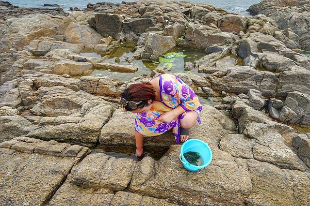 这里叫牡蛎公园,就是因为这里的礁石上生长着大量的牡蛎,潮起潮落为牡蛎的自然生长提供利好条件,所以这里是退潮后来赶海挖牡蛎的最佳地点。