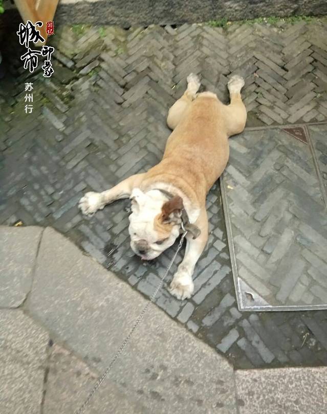 这条狗在平江路是很有名的,趴在有空调的店门口,任凭主人怎么叫,怎么拖,就是赖着不走。