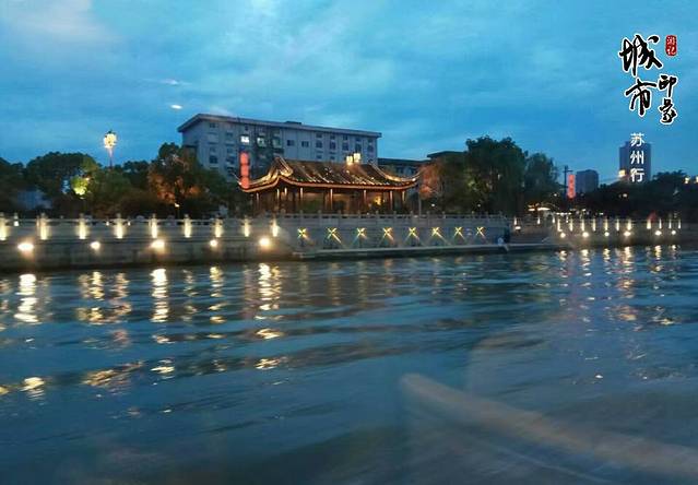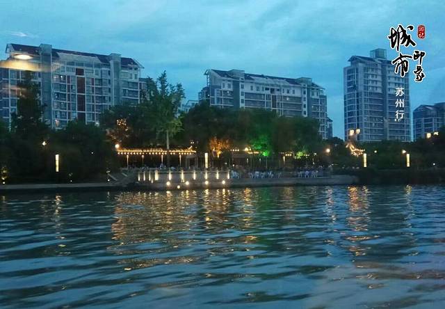 7月份的苏州,晚上7点半左右天开始黑了,考虑到一个人夜晚不太安全,我坐的是6点半的船。整个行程分两段,游第一段的时候,天还没有黑,第二段的时候黑就基本上全黑了。