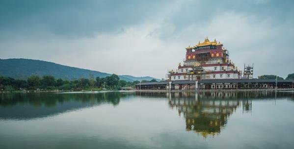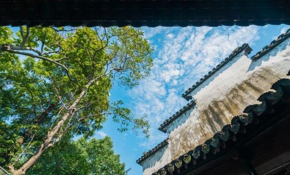 十月惠山,枫叶未红,白墙黛瓦,阳光正好,亭台阁楼倒映在池水中,宛然构成了一幅绝妙的江南画卷。
