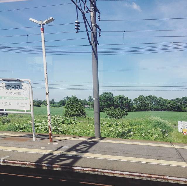 去旭川是没有直达的,必须要在札幌站上楼换乘。跟着指示牌没有问题的。一路上车厢里都非常非常的安静,窗外渐渐从城市变成了各种农田,绿油油的一片,所有景色都自带“日系滤镜”。差不多一个多小时后我们到达了旭川站。