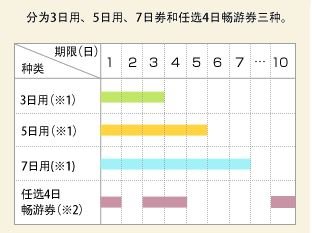 ※1…3日用、5日用、7日用票券可在选定的使用开始日起,连续使用3天或5天或7天。