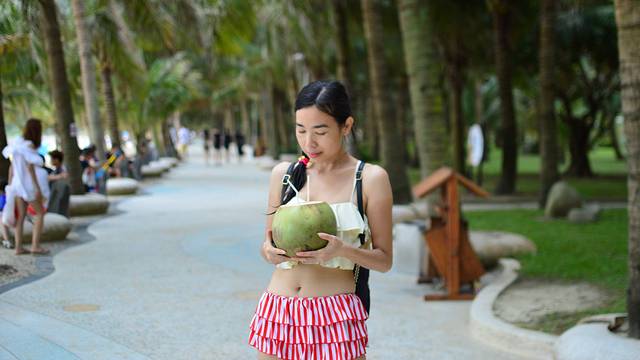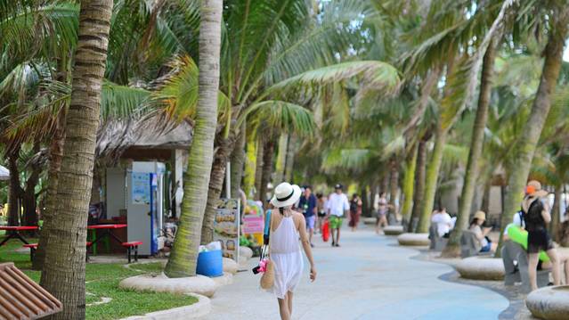 海滨浴场、香蕉船、音乐酒吧,椰林、海鲜