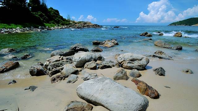 牛塘湾,说真的,这是一个有点漂亮的小海滩,建议停留20分钟,说太小,真的是小,只有两百米左右的海滩,这里不是海滨浴场,不可以下水,游客不多,无需门票,可以在这里拍拍照还不错,特别是喜欢拍写真的人,这里真的很适合婚纱摄影,不会有太多人打搅,有沙滩,有礁石,有山有树,是一个美丽的天然摄影棚。