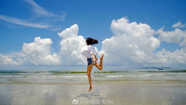 我喜欢的地方,天晴的时候它就很美,一马平川的沙滩,白云就浮在海上,大片大片的白的炫目,写真控们不可错过,拍写真可是很美哦