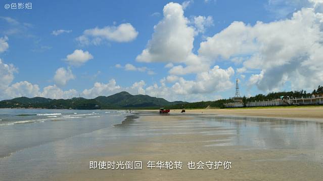 飞沙滩美在哪里呢,美在蓝蓝的天 ,美在白白的云,美在绿绿的小山包,美在潮水下退的沙滩,美在无穷无尽的海浪
