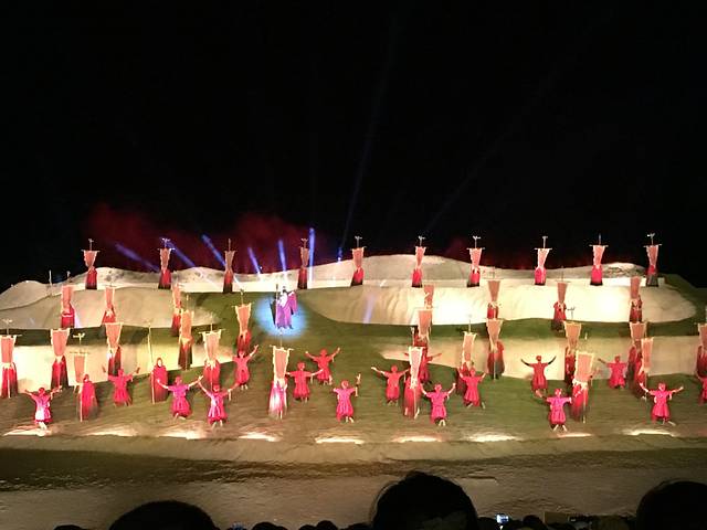 一定要观赏一下敦煌盛典,大型沙漠实景演出,360度旋转观众席,3D灯光视觉,很震撼,非常值得一看。