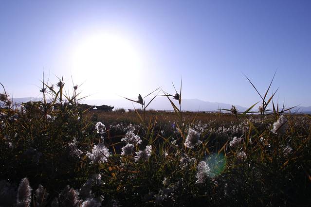 后来,可鲁克姑娘长眠的地方形成了清澈碧绿,小巧玲珑的淡水湖,托素安息的地方生成了一面辽阔的咸水湖,传说是因为托素背的盐溶化形成的。可鲁克湖的水通过可鲁克姑娘的纤纤小手流入托素湖,是她在生命最后对情人的呼唤。