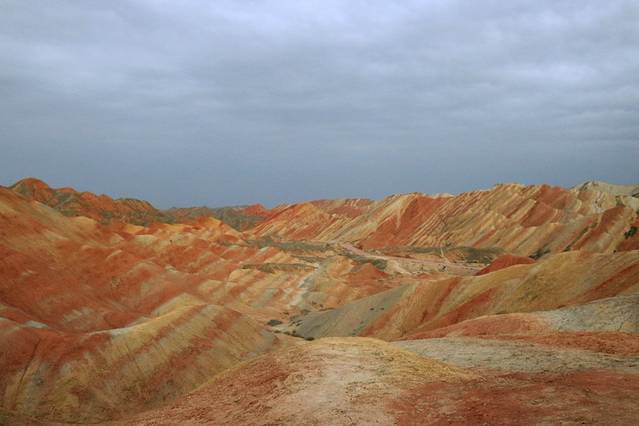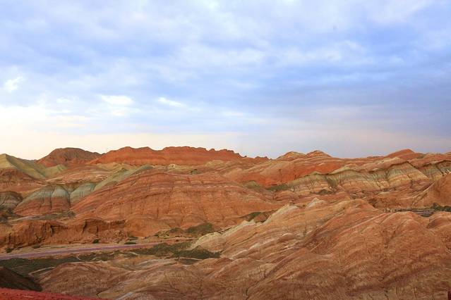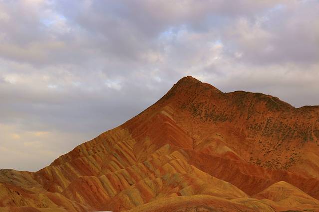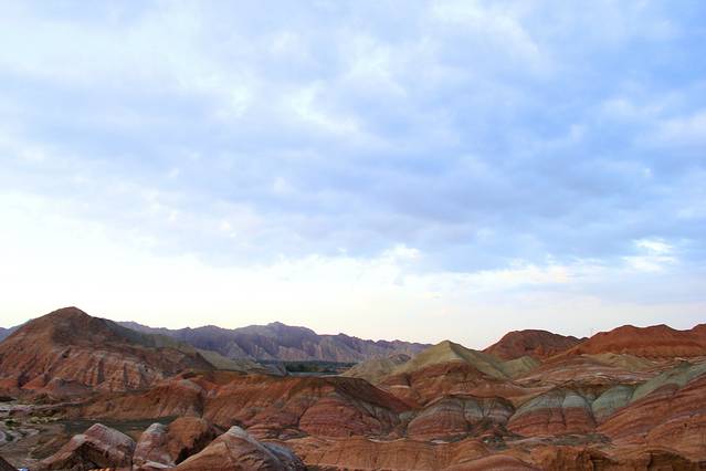 在嘉峪关耽误一些,到七彩丹霞赶上最后一班车,因为云层较厚,日落余晖不能照应丹霞,所以没那么美,但也很壮丽了。