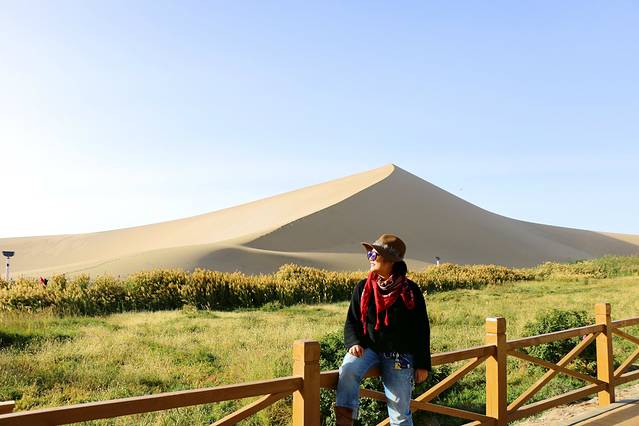 在鸣沙山一定穿靴子,回家可以带点沙子😄。也可以租靴袜,但是很难看,走起路来也不方便。