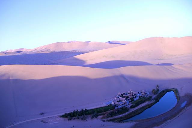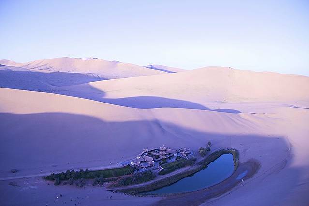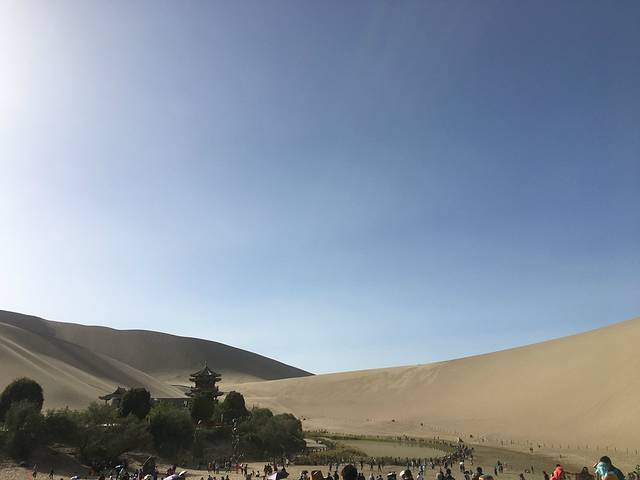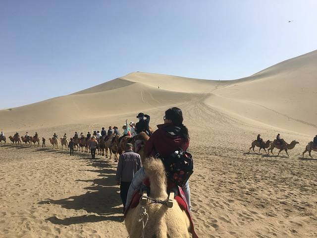 骑完骆驼可以滑沙、赏月牙泉,登楼远眺或滑翔空中一览无余。