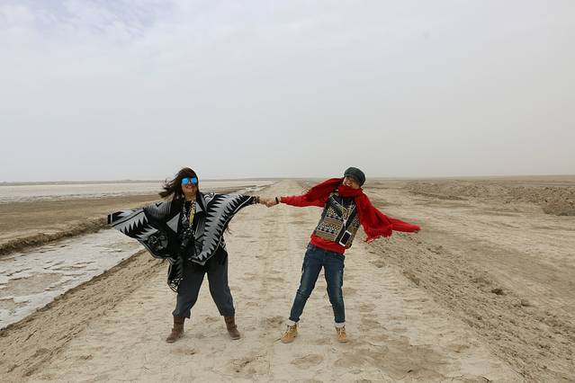 穿越茫茫荒漠,风沙达到能见度不足10米,虽然慌慌的,但还是顺利的到达目的地了。
