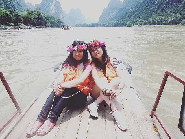 这个时候正好看见两个女生也在找竹筏,我们心想可以和她们拼竹筏啊, 于是就走上前去询问, 没想到她们也正有此意, 这算是一拍即合的缘分啊,于是决定在向前询问那位大姐,看是否能便宜点, 可是询问的结果却出乎我们的意料。原来阳朔的竹筏都是有垄断潜规则的。