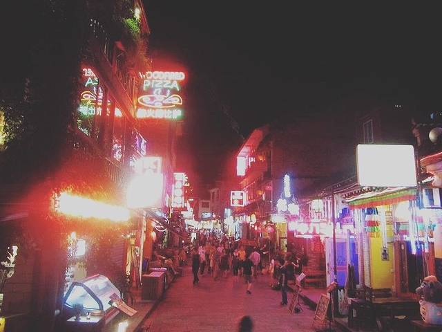 西街的酒吧一条街白天显得比较冷清,不过到晚上那就热闹了