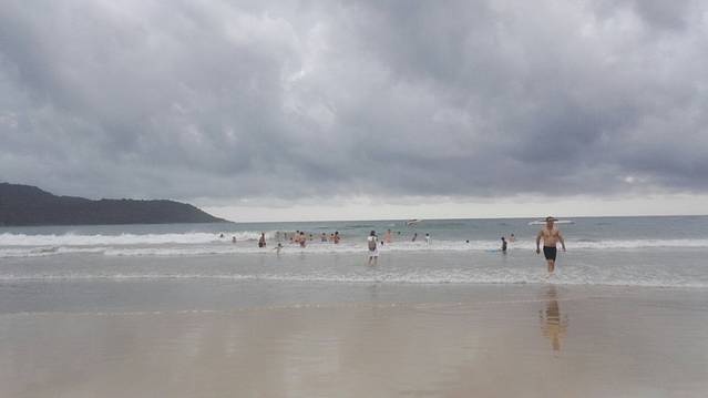 回来后去了海滩玩耍~不过这天天气不太好,想下雨的样子。但是沙子很细,很舒服呀。好多外国人带孩子来游泳玩耍住的地方离海滩也很近,有指示牌