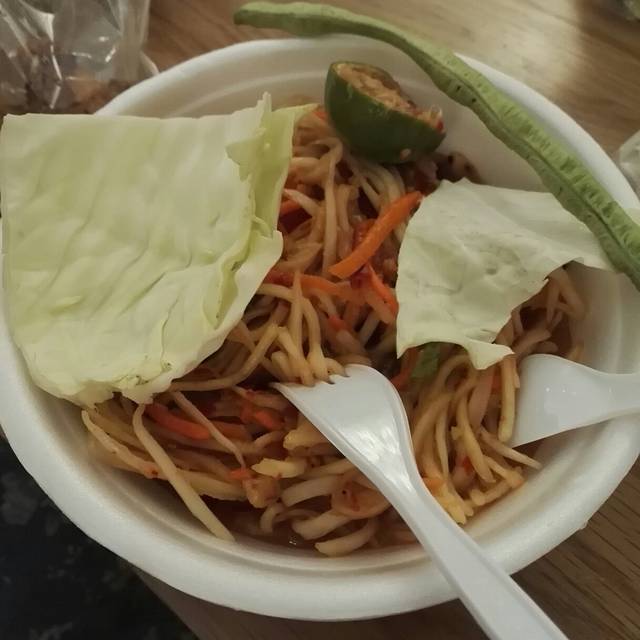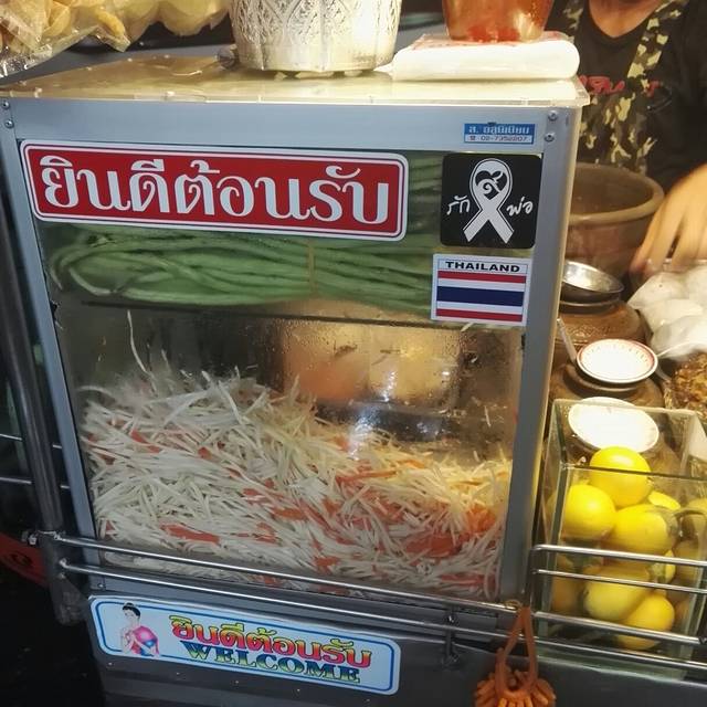 青木瓜沙拉!老板不会英文,我们也不懂是什么,跟着前面一个小姐姐买的。小姐姐不会英文但是但是用了翻译软件帮我们哈哈哈哈。两个人只买了一份,但是老板给了两份的量!!!!感动哭有生包菜、豆子和青柠檬。泰国人吃辣也很厉害啊。老板给的辣椒辣的我眼泪掉下来……