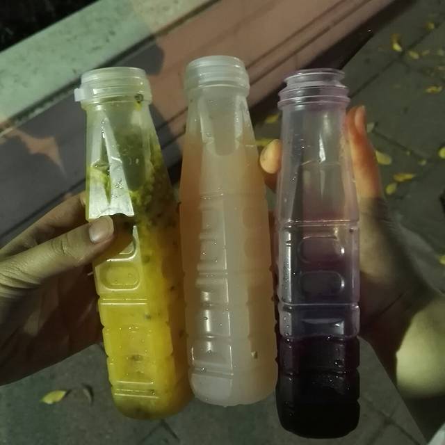买到了便宜的新鲜果汁,百香果、荔枝、火龙果和崩大碗(不知道是啥就尝试了一下)。百香果好喝的不得了,后来又买了一瓶。(除了崩大碗10B,其他都是15B)泰国的鲜榨果汁真的很良心啊,不掺水很纯正~